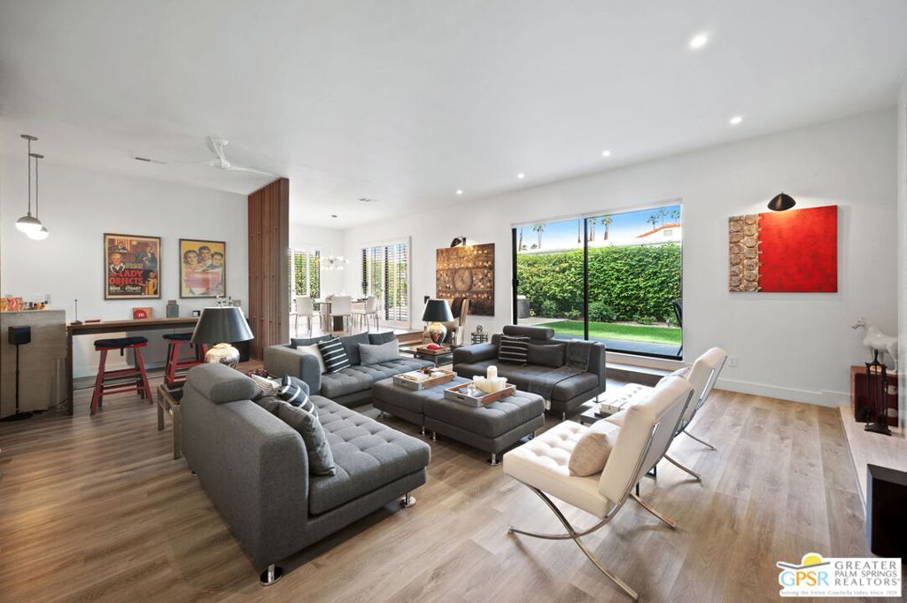Welcome to Country Club Estates, a gated enclave of only 100 homes located in central Rancho Mirage. This expansive remodeled single family home with 3 bedrooms, 3 bathrooms plus a den/office and a 3 car garage blends seamlessly indoor/outdoor living with an elegant, spacious feel. Upon entering the gated courtyard, you are drawn into the foyer and beyond into the large living, dining, and wet-bar areas, all framed by sliding doors that lead to the multiple tiled outdoor patio spaces. The chef’s kitchen features stainless steel appliances and a large quartz-clad center island. All bedrooms are located down an oversized travertine walkway, complete with wired-in picture lights. The primary suite has direct access to a tiled atrium, filling the room with natural light and views of the manicured lawn and mature trees. The home includes a whole-house owned solar system. Resort-style amenities include tennis, pickleball, pool and spa, all just steps away from the house. Why aren’t you living here yet?