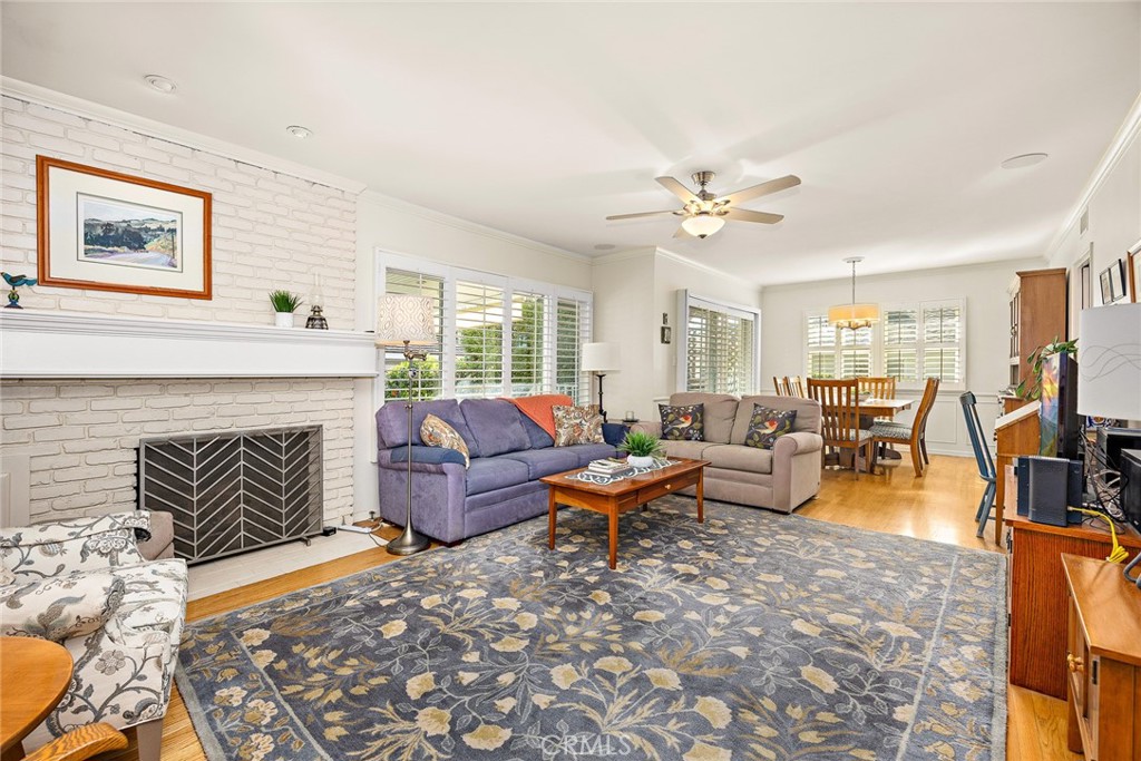 Savor a slice of foothill heaven in this charming character ranch in NE Glendora on a lovely residential street with mountain views. Gleaming hardwood floors, floor to ceiling bricked fireplace, plantation shutters and attractive wainscoting accent the living and dining rooms. A large picture window and sliding patio door bring in views of the park like yard over one quarter acre. The updated kitchen with wood cabinetry and granite countertops features roll out drawers, a pantry and cheerful breakfast nook. Convenient service porch with extra storage space has side access to the driveway. Both bathrooms have been remodeled, the hall bath boasting a large custom-tiled walk-in shower with bench, granite vanity with dual cabinets, and tiled floor. Primary ensuite bath features a tiled walk-in shower, wainscoting and pedestal sink. Step outside to a glorious Garden of Eden with a colorful palette of plants and shrubs, including four shades of hibiscus flowers, and citrus trees. While away the long summer days and nights under the large covered lighted patio, enjoying beautiful, lush grounds in a peaceful and private setting. A convenient potting shed behind the garage gives you space to dig into your plant projects. Two car detached garage and long concrete driveway allows extra parking. The front yard has water-efficient landscaping with a mix of colorful native plants and shrubs. The quiet neighborhood of attractive homes is within walking distance of Willow Springs Park and Seller’s Elementary in the acclaimed Glendora School District. Outdoor enthusiasts will hear the call of the wild from the hiking and biking trails in the local foothills. A rare find!