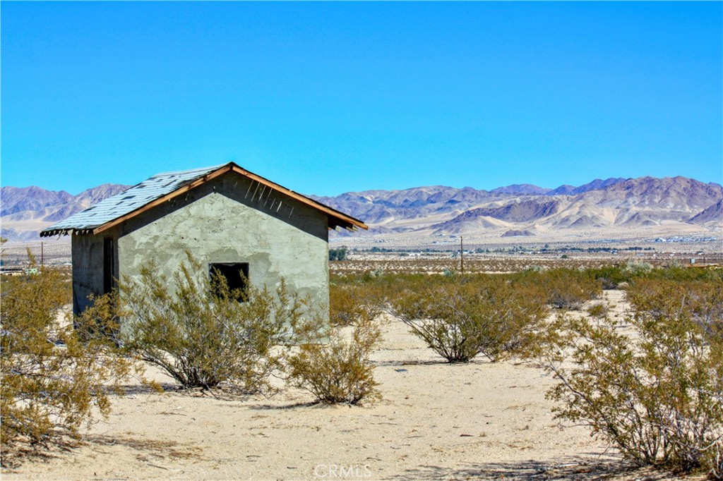 A beautiful plot of land equipped with a recreational cabin located near many important locations in 29 Palms. This property has the potential to be the perfect getaway for someone seeking a quiet escape from the 9-5 hustle and bustle of city life. A vast array of stars and expanse of sky could lead to countless moments of rest and relaxation while being near enough to the local market and stores to quickly get provisions. Water meter already installed on property; buyer to verify with the city/county. Buyer to verify all information: water, electric, property lines, etc. Please note address is fictitious. Follow directions in order to locate the property.