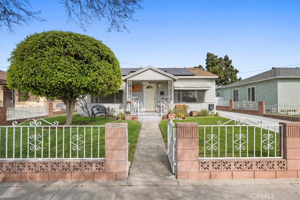 Charming 2-bedroom, 1-bath home in a well-maintained Pico Rivera neighborhood. Thoughtfully updated with a new roof, solar panels, and a new AC unit for year-round comfort. The bathroom has been renovated, good size two car garage down the long gated driveway with electronic opener. The property includes a recently built, electrified shed for workshop or storage use. Lovely, low-maintenance backyard—perfect for relaxing or entertaining. Comfortable front porch to enjoy those cool evenings or early morning coffee. Solar panels can be paid for at the close of escrow by the seller or payments are assumable. Owners did a great job on these owned solar panels an only pay basic connection fees to Edison. The solar panels and Tesla battery handle the power production and usage.