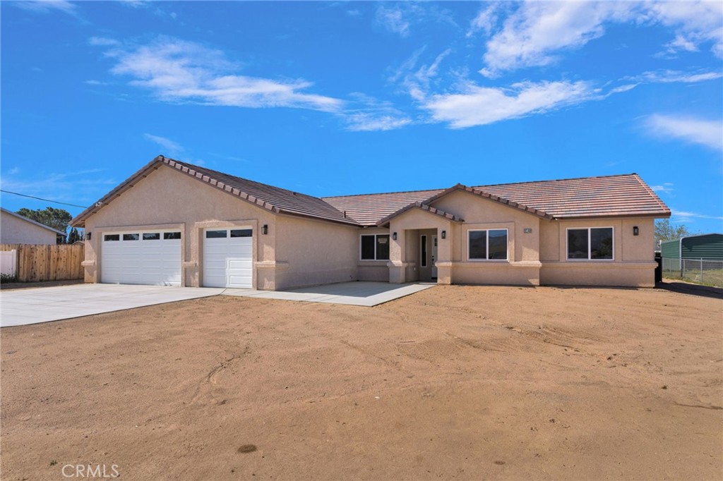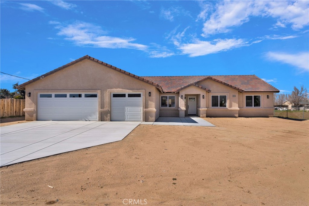 Welcome to wide open living in Hesperia. This brand new home sits on just under a half acre and perfectly blends modern style, privacy, and the kind of space that makes High Desert living so special. From the moment you pull up, you’ll notice this home was thoughtfully designed with both comfort and entertaining in mind. Inside you’ll find 4 spacious bedrooms, 2.5 bathrooms, and a 3 car attached garage, all wrapped into a bright open layout with soaring vaulted ceilings and beautiful finishes throughout. The flooring is a tile wood plank style that gives you the warm look of wood with the durability and easy maintenance of tile. The kitchen is truly the centerpiece of the home. It features a massive quartz island that’s perfect for gathering with family or friends, matching quartz countertops, stainless steel electric appliances, and a generous walk in pantry that keeps everything organized and within reach. Just off the kitchen is a formal dining room that adds a touch of elegance for holidays or dinner parties. The living room feels both spacious and inviting with a beautiful electric fireplace that adds warmth and style without the hassle of gas. The entire home is fully electric, designed for efficiency and modern living. The primary suite is a retreat of its own, featuring a custom hand laid tile shower that brings a high end spa like feel to your daily routine. Step outside and you’ll appreciate the freedom that comes with nearly half an acre. The property is fully fenced, offers RV parking, and features a large covered back patio that’s perfect for relaxing evenings, weekend barbecues, or simply enjoying the quiet desert views. And with paid off solar already installed, you’ll enjoy lower monthly energy costs from day one. If you’ve been looking for a brand new home with space, style, and room to breathe, this one checks all the boxes.