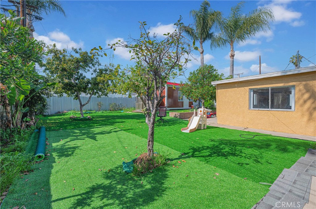 Beautifully renovated 4-bedroom, 2-bath home in a prime location within walking distance to the elementary school. Situated on a spacious 8,308 sq ft lot, the property offers excellent potential, including possible ADU opportunities (buyer to verify). The home features a modern kitchen, new flooring, fresh interior paint, and remodeled bathrooms, creating a move-in ready living space that is both stylish and functional. Enjoy a private backyard with new lawn, updated fencing, and mature fruit trees — perfect for relaxing or entertaining. A double-car garage provides ample parking and storage. Additional highlights include an approximately 484 sq ft sunroom/playroom offering flexible use (not included in living square footage). The backyard also includes a separate 1 bed, 1 bath mobile home for extended family or flexible use (buyer to verify permits and usage). Sold AS IS. Great opportunity for both homeowners and investors.