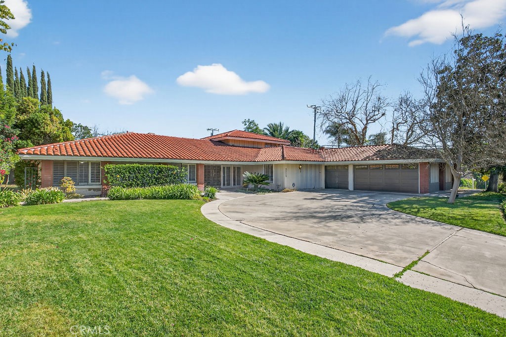 Tucked away in the coveted hills of Villa Park, this sprawling estate is loaded with opportunity and charm. Situated on a spacious and highly desired 21,000 square foot lot, this almost 4000 square foot home enjoys a single-story floor plan with functional second-level bonus room. An inviting side lit double door entry gives way to a spacious, and airy formal entry. Elegant stone floors lead to a cathedral ceiling living room complete with brick finished fireplace, soaring ceilings, dual sliders, and art nooks. The family room is finished with hard wood floors, coffered ceilings, wet bar with bar top seating, impressive brick fireplace, and oversized windows, giving this room a bright and inviting feel. Kitchen is a side loaded galley style with ample space, breakfast nook with back yard access slider, and convenient location between the family room and large dining room. Dining room is open with the living room, making it perfect for those formal functions or entertainment. The dining room also boasts elegant, coffered ceiling detail, recessed canned lighting, hardwood floors, and picture window views of the lush backyard. The primary bedroom is spacious and open with large slider for backyard access, large walk-in closet, dual vanity sinks, beauty desk, and seamless glass shower. The second level bonus room provides ample space for theatre room, office space, or additional bedroom options. It also enjoys a viewing deck, built in cabinets, and coffered ceilings. All secondary bedrooms are spacious and functional. This home enjoys tons of natural light and an open airy feel in almost every corner of the home. The backyard offers the space and serenity Villa Park is famous for. Sprawling grass, mature landscape, pool and spa, and spacious patio give the yard a warm and inviting feel. Other features include spacious curved driveway with ample parking, three car garage, corner lot location, plantation shutters, spacious laundry room with storage, and more. Please call immediately for additional details!