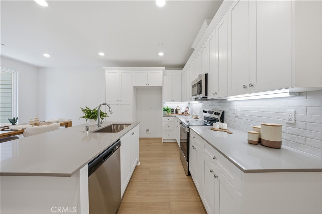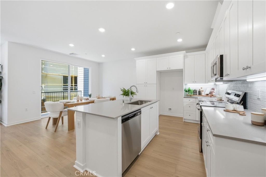 BRAND NEW TOWNHOME! Welcome to Valley Villas, a private, gated community offering 58 all-electric, tri-level townhomes designed for modern urban living. Conveniently located just minutes from the 405 freeway, this home provides quick access to everything you need, whether for work or play. This thoughtfully designed townhome features a large 2-car garage and a welcoming foyer on the ground level with beautiful LVP flooring that continues on the stairs leading you to the next level. The second floor is all about open, modern living that features more LVP flooring, upgraded quartz kitchen countertops with a full backsplash, undercabinet lighting, 9-foot ceilings, a bright dining room, and sliding doors that lead to a balcony, perfect for enjoying fresh air and natural light. A powder room on this level adds extra convenience for guests. On the top floor, you’ll find the primary bedroom suite, complete with a walk-in closet. The secondary bedroom also includes en-suite bathroom, offering privacy and comfort. The laundry area is conveniently located on this floor as well, making daily tasks a breeze. Come see this home right away to take advantage of our large INCENTIVES that will make this home even more affordable! “Photos are for illustrative purposes only and may not represent the actual unit/home”. Call our Valley Villas Sales Office at 818-920-8950 for more detailed information.