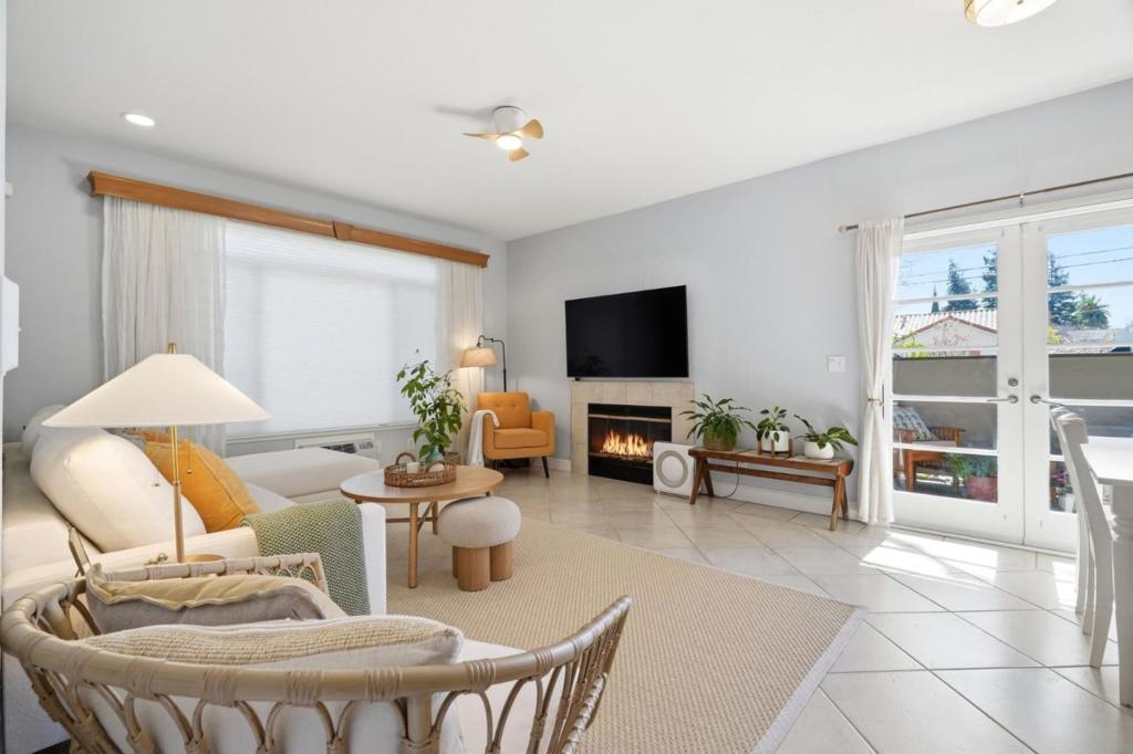Welcome to 95 Hobson Street #6A, a bright ground-floor condo with a private patio in the heart of San Jose. This move-in ready home offers an open living and dining area filled with natural light, a cozy fireplace, and French doors that lead to a private outdoor patio which is perfect for relaxing or enjoying a little fresh air right outside your living space. Originally featured as the communitys model showcase unit, the home enjoys a desirable location within the complex. The kitchen features shaker cabinetry, stainless steel appliances, generous counter space, and a newly installed ceiling-mounted range hood that helps maintain the open feel between the kitchen and living area. Additional highlights include a tastefully updated bathroom, laminate flooring in both bedrooms, new ceiling fans, updated window blinds, and added storage improvements throughout the home. The unit includes one reserved carport parking space, along with ample guest parking and convenient street parking located directly outside the unit. Conveniently located near Japantown, San Pedro Square Market, and downtown San Jose, with easy access to Light Rail and Highways 87 and 880, this home offers a great balance of comfort, accessibility, and vibrant city living.